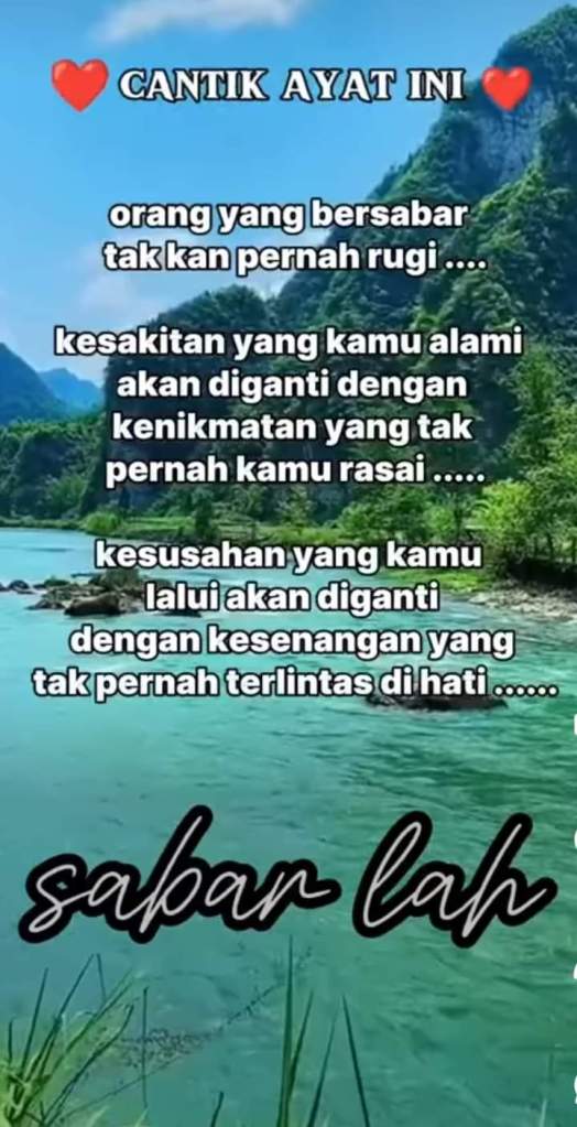 TSP. – Mintalah pertolongan dari Allah dengan solat dan sabar. In shaa Allah. https://tspoh.art.blog/